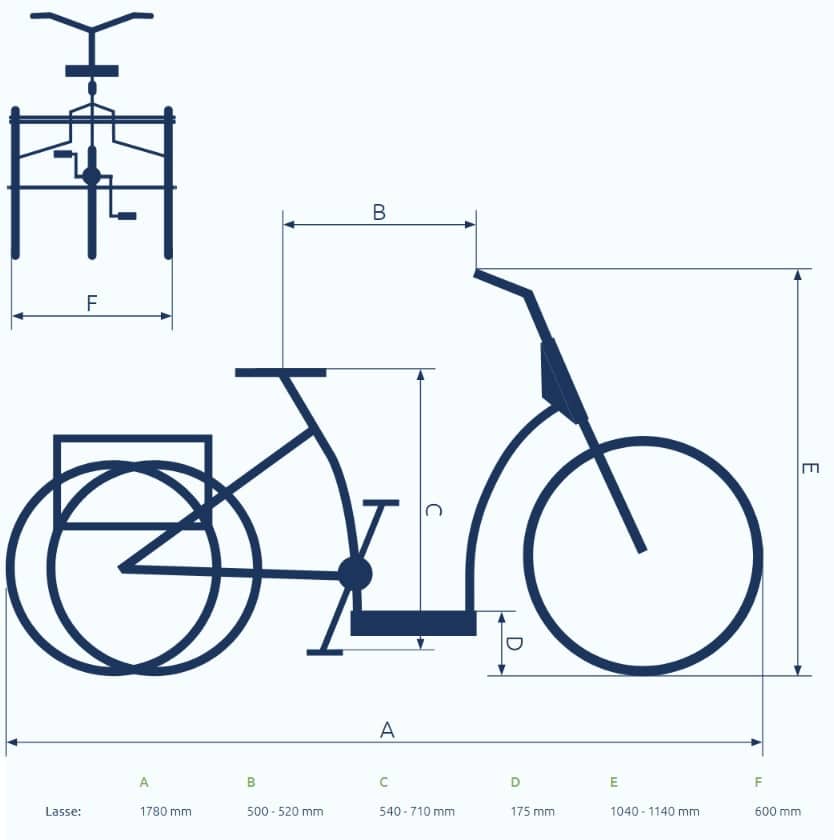 De Pfautec Lasse is het meest compacte instapmodel binnen de driewielers van Pfautec. Met een totale breedte van slechts 60 cm is deze driewieler bijzonder wendbaar en eenvoudig te manoeuvreren. Dit maakt hem zeer geschikt voor gebruik in stedelijke gebieden of voor mensen die minder ruimte hebben.