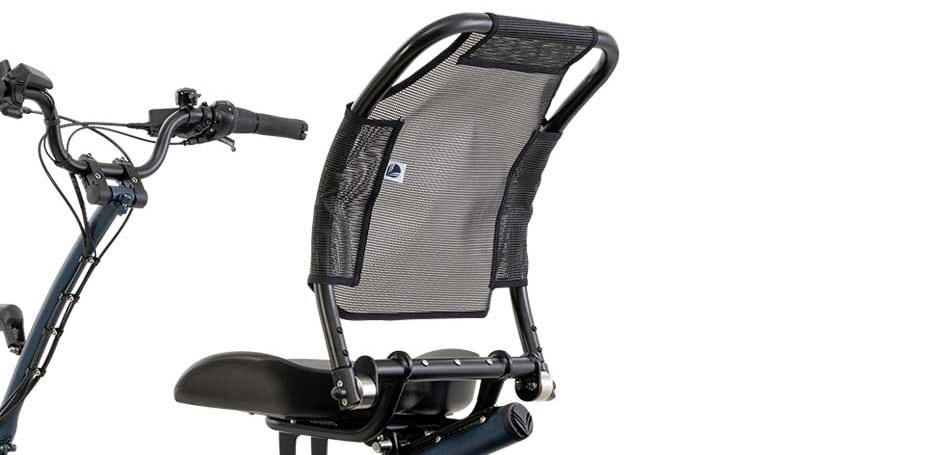 Voor optimaal comfort is de Scoobo voorzien van een geveerde achtervork die schokken van oneffenheden opvangt. De comfortabele stoel is verstelbaar in hoogte en leuninghoek, zodat u altijd stabiel en ontspannen zit. Stoppen onderweg? U zet eenvoudig één voet aan de grond terwijl u in de stoel blijft zitten.