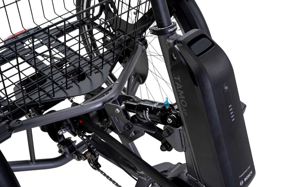 Pfautec Tamo AP elektrische driewieler met Bosch Active Plus motor, 545Wh accu (uitbreidbaar), Purion 200 display, hydraulische remmen en achtervering.