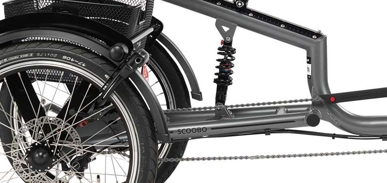 Geveerde achtervork – vangt schokken en oneffenheden in het wegdek op.
